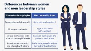 The following table summarizes the key differences between women’s and men’s leadership styles.